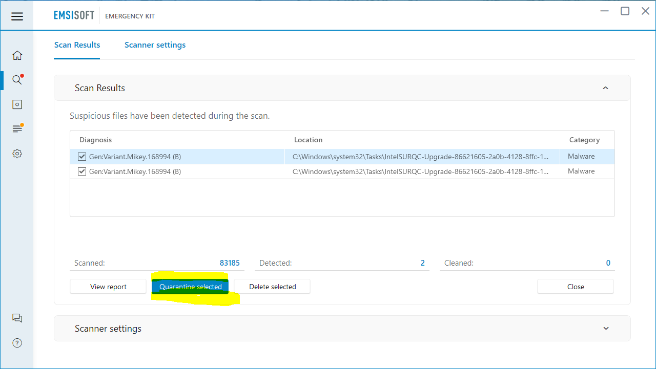 2. Emsisoft Emergency Kit or Microsoft Security Scanner (64bit version) or (32bit version)