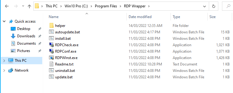 Once done the "C:\Program Files\RDP Wrapper" folder should look like this:
