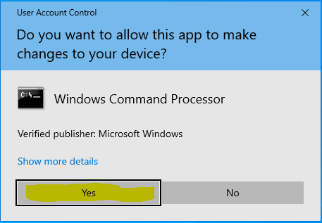 The Command Prompt will now appear on the desktop. Execute the following command: